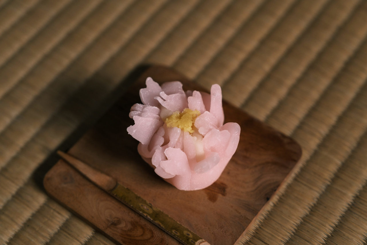 今回は岐阜の虎屋本店様による桜をイメージした和菓子をお作りいただきました。柔らかくて自然な甘さでとてもお抹茶と合います。